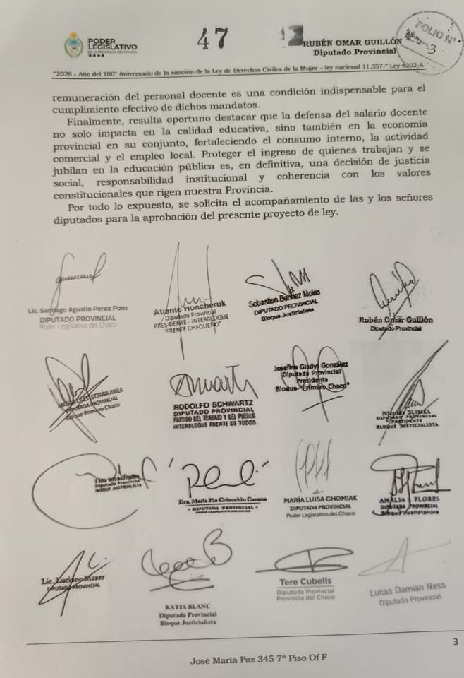 La imagen de unidad que proyecta la firma de los 16 legisladores es un mensaje claro al Sillón de Obligado: el ajuste no pasará sin resistencia. El bloque opositor, liderado por el Interbloque Frente Chaqueño, denunció que el Gobierno Provincial ha utilizado la inflación como una herramienta de ajuste fiscal, «licuando» el salario de los trabajadores de la educación mientras se jacta de un equilibrio financiero que solo existe sobre el hambre de las familias docentes.