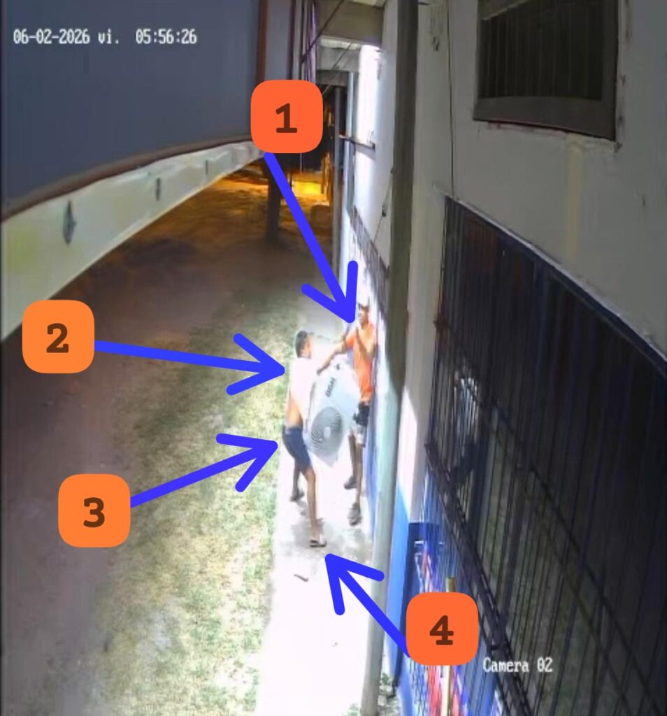 El hecho delictivo se produjo durante la madrugada, cerca de las 04:30, cuando dos sujetos escalaron las rejas del local y, tras violentar los soportes, lograron arrancar un equipo split marca BGH. Toda la secuencia quedó registrada por las cámaras de seguridad del establecimiento.