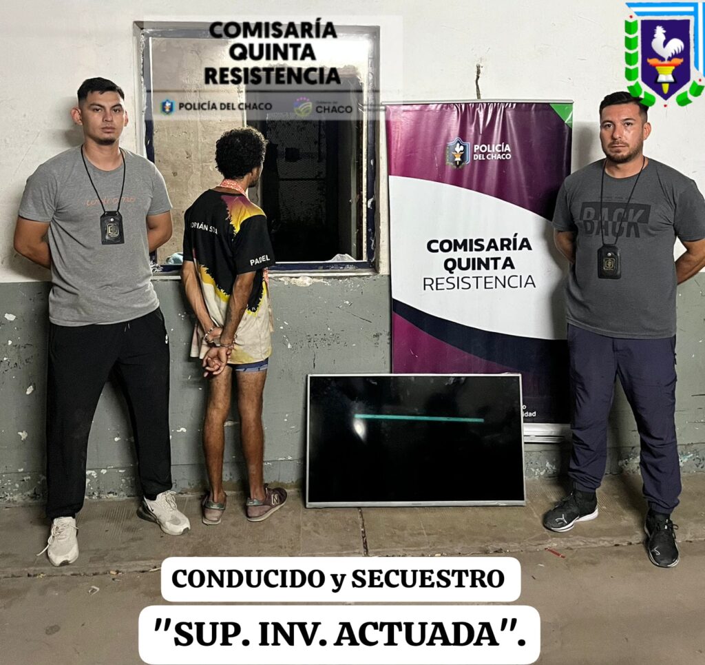 Horas más tarde, cerca de las 3, efectivos tomaron conocimiento de que un sujeto intentaba vender un televisor presuntamente robado en el barrio Juan Bautista Alberdi. Luego de patrullajes preventivos, lograron demorarlo en la calle Goitía.