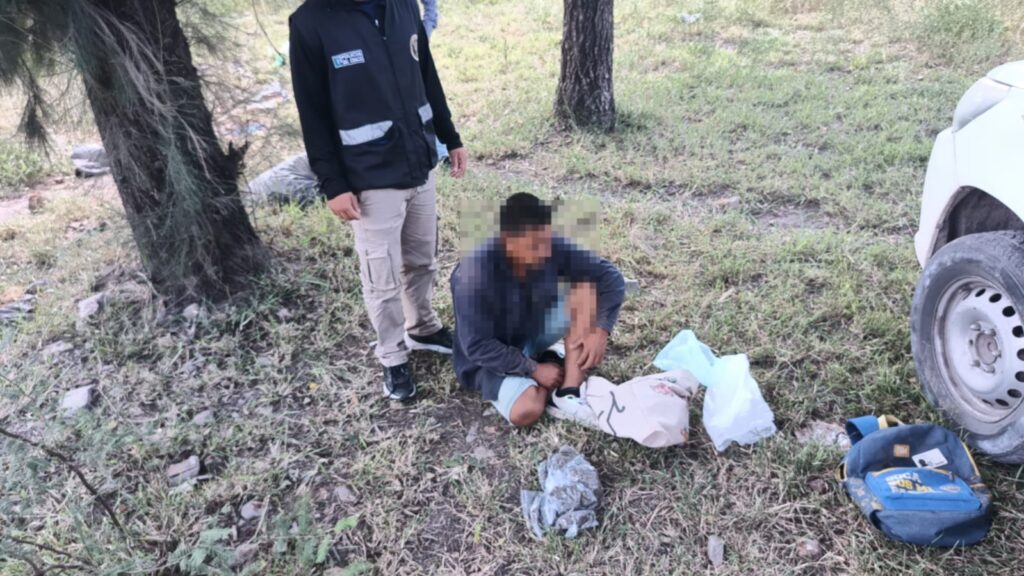 Al intentar identificarlos, dos de los sujetos se dieron a la fuga, mientras que el tercero intentó escapar arrojando una bolsa en el lugar. Tras darle la voz de alto, fue demorado por el personal policial.