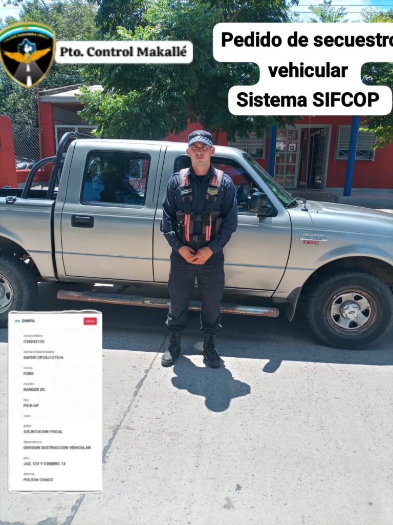 Al consultar los datos del rodado en el sistema MIMINSEG–SIFCOP, los agentes constataron que la camioneta registraba un pedido de secuestro vehicular activo desde el 23 de noviembre de 2022, con intervención de la Fiscalía Nº 13 de Resistencia.