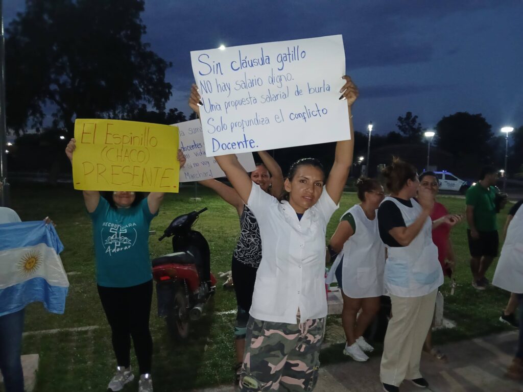 Docentes de esta localidad participaron del banderazo provincial convocado en distintos puntos del territorio chaqueño, donde expresaron un fuerte rechazo a la propuesta salarial presentada por el gobernador Leandro Zdero. Durante la manifestación, los educadores señalaron que atraviesan una situación económica crítica y advirtieron que sus ingresos ya no alcanzan para cubrir necesidades básicas.
