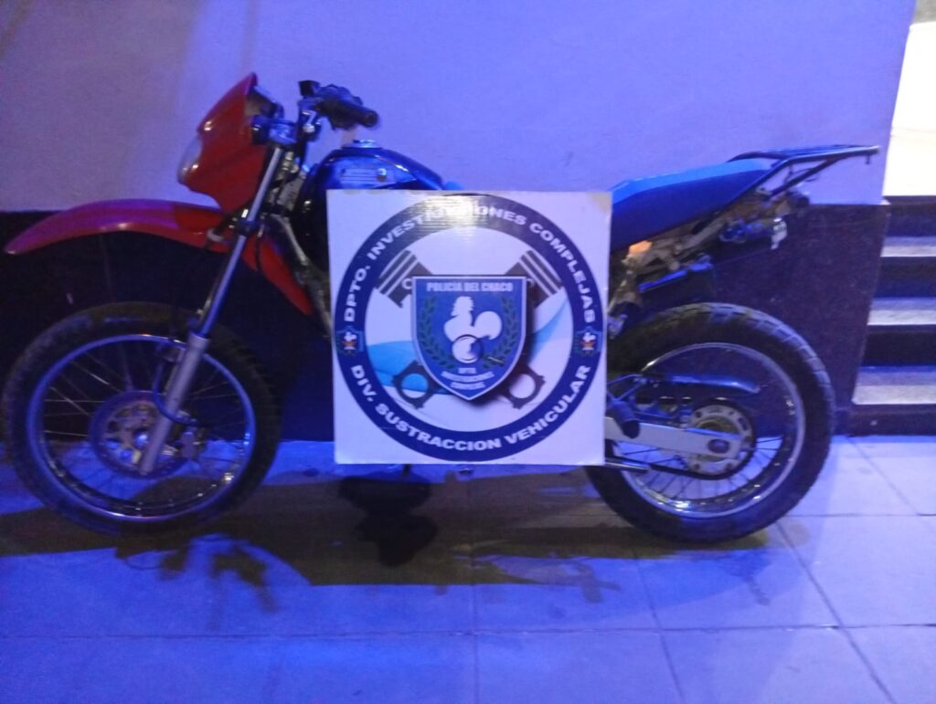 Una motocicleta que había sido sustraída horas antes de un predio deportivo fue recuperada por efectivos de la División Sustracción Vehicular, tras un procedimiento realizado en la intersección de avenida Arribalzaga y pasaje Fortín Loma Negra.