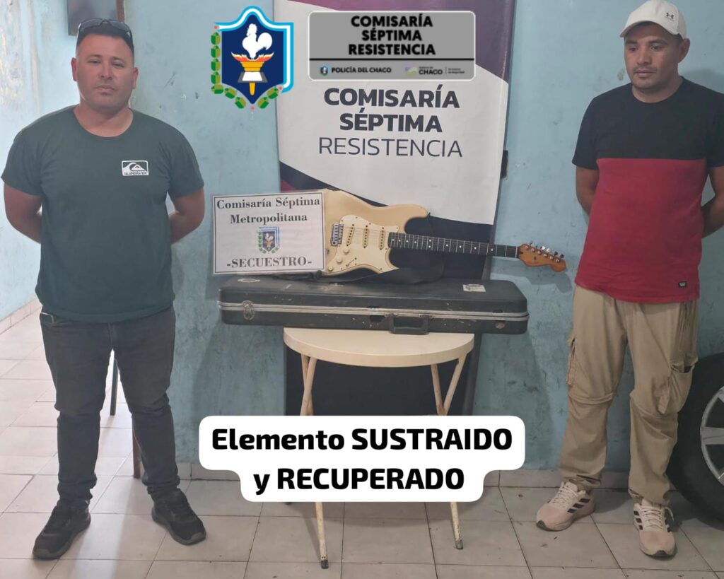 Una guitarra eléctrica de alta gama, valuada en aproximadamente 7.800.000 pesos, fue recuperada por personal policial y restituida a su propietario en la ciudad de Resistencia, luego de haber sido sustraída y posteriormente comercializada a través de la red social Facebook.