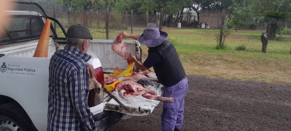 Tras inspeccionar el vehículo, los uniformados hallaron tres bolsas que contenían aproximadamente 50 kilogramos de carne de chancho cimarrón. Al constatar que el conductor no contaba con los permisos correspondientes para la actividad, se procedió al decomiso de la mercadería por infracción a la Ley de Caza Nº 1429-R, con intervención de la Dirección de Fauna de la Provincia.
