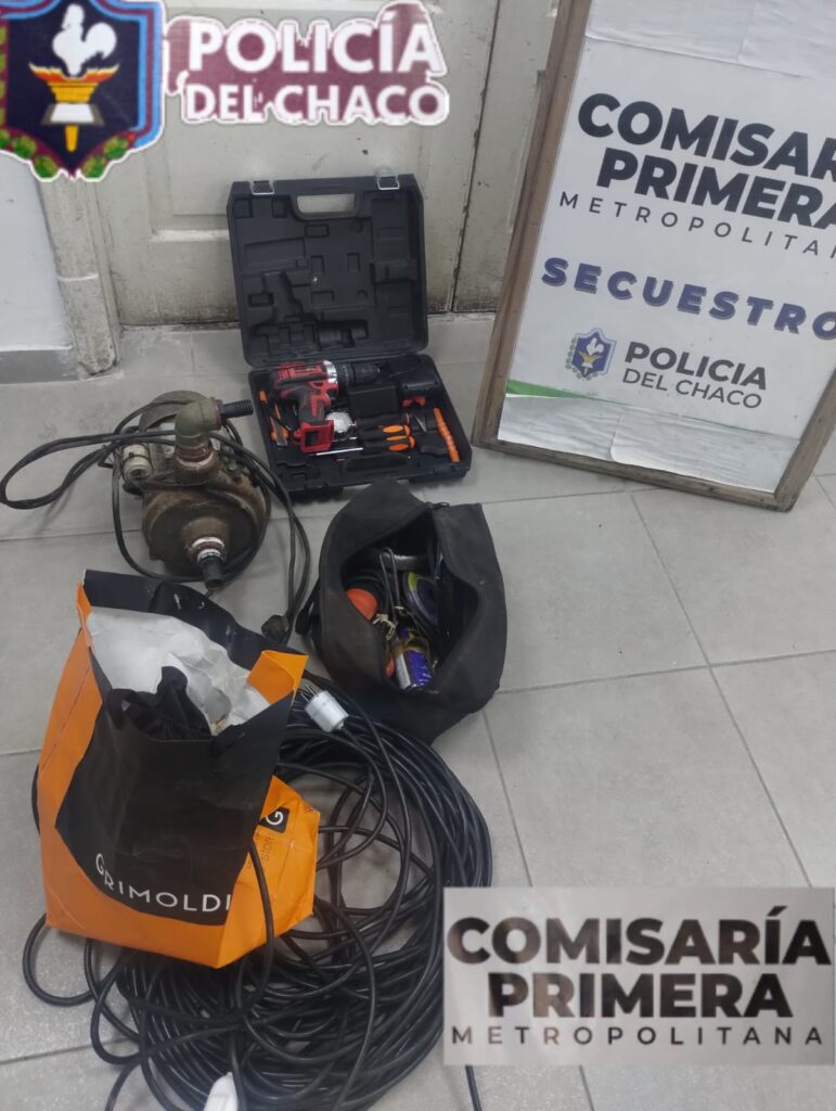 En su poder, los efectivos secuestraron diversos elementos, entre ellos una bomba de agua, un destornillador eléctrico, un cable de aproximadamente 100 metros y una amoladora.
