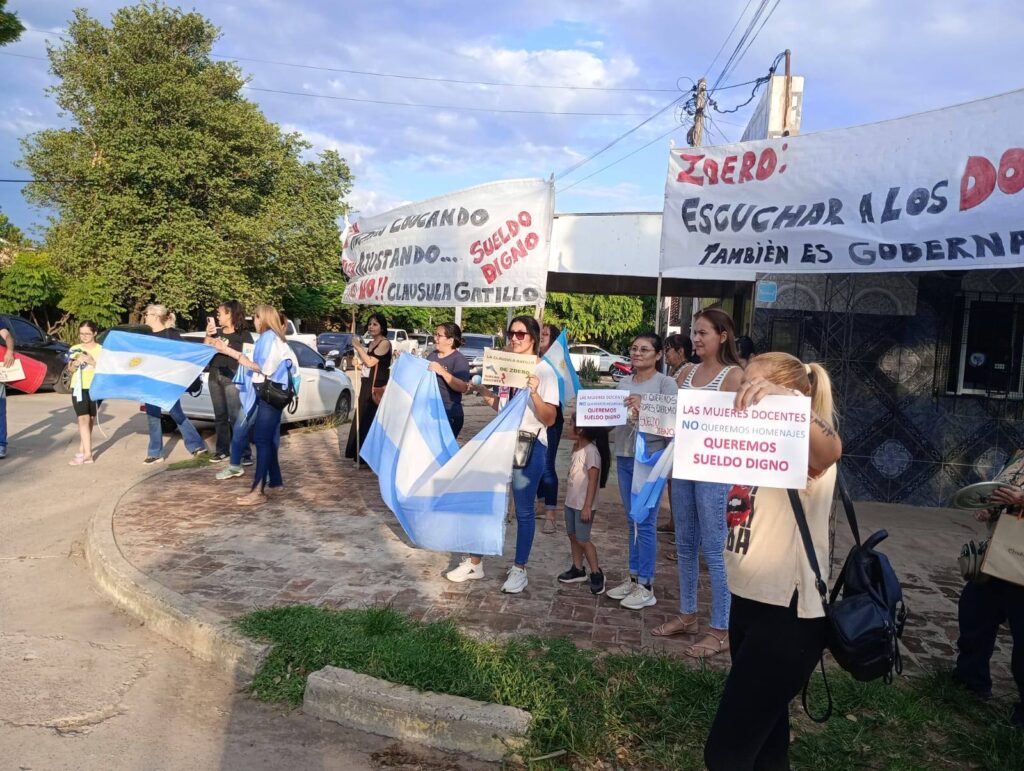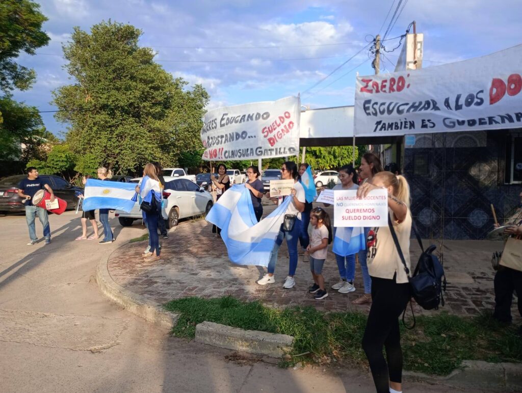 Mientras tanto, en el exterior del edificio, los docentes llevaron adelante una manifestación pacífica con el objetivo de visibilizar sus reclamos. Entre los principales pedidos mencionaron la necesidad de un salario digno, la aplicación de la cláusula gatillo y respuestas concretas a la situación salarial y laboral que atraviesa el sector educativo, problemática que desde hace semanas genera protestas en distintos puntos de la provincia.