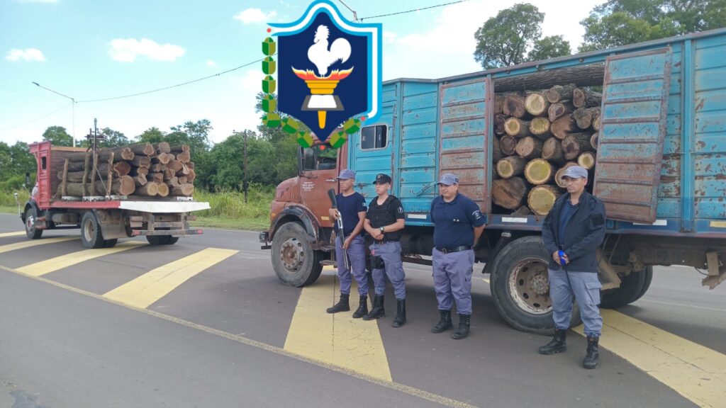 Durante el control, los agentes interceptaron dos camiones marca Mercedes Benz 1114 que trasladaban aproximadamente 6.000 kilos de rollos de madera de las especies algarrobo y lapacho. Al solicitar la documentación, los conductores no pudieron presentar la guía forestal obligatoria para el transporte de este tipo de productos.