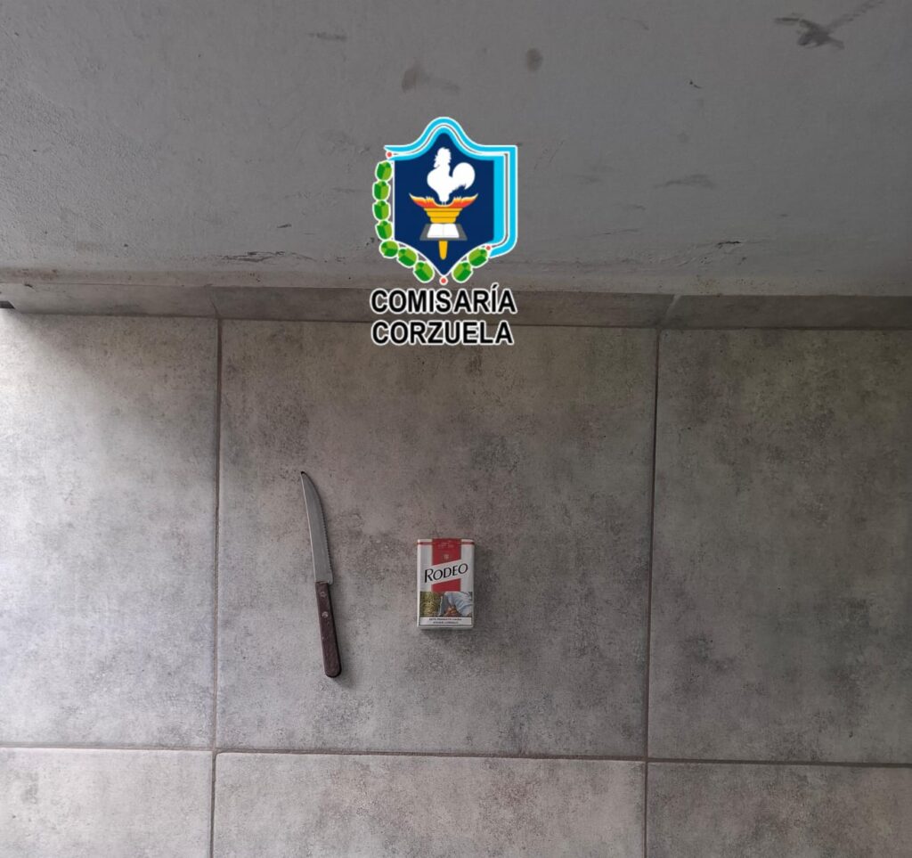 Tras tomar conocimiento de lo sucedido, efectivos de la Comisaría de Corzuela iniciaron tareas investigativas y lograron localizar al presunto autor horas más tarde. Durante el procedimiento secuestraron un cuchillo tipo tramontina de aproximadamente 25 centímetros y un paquete de cigarrillos.
