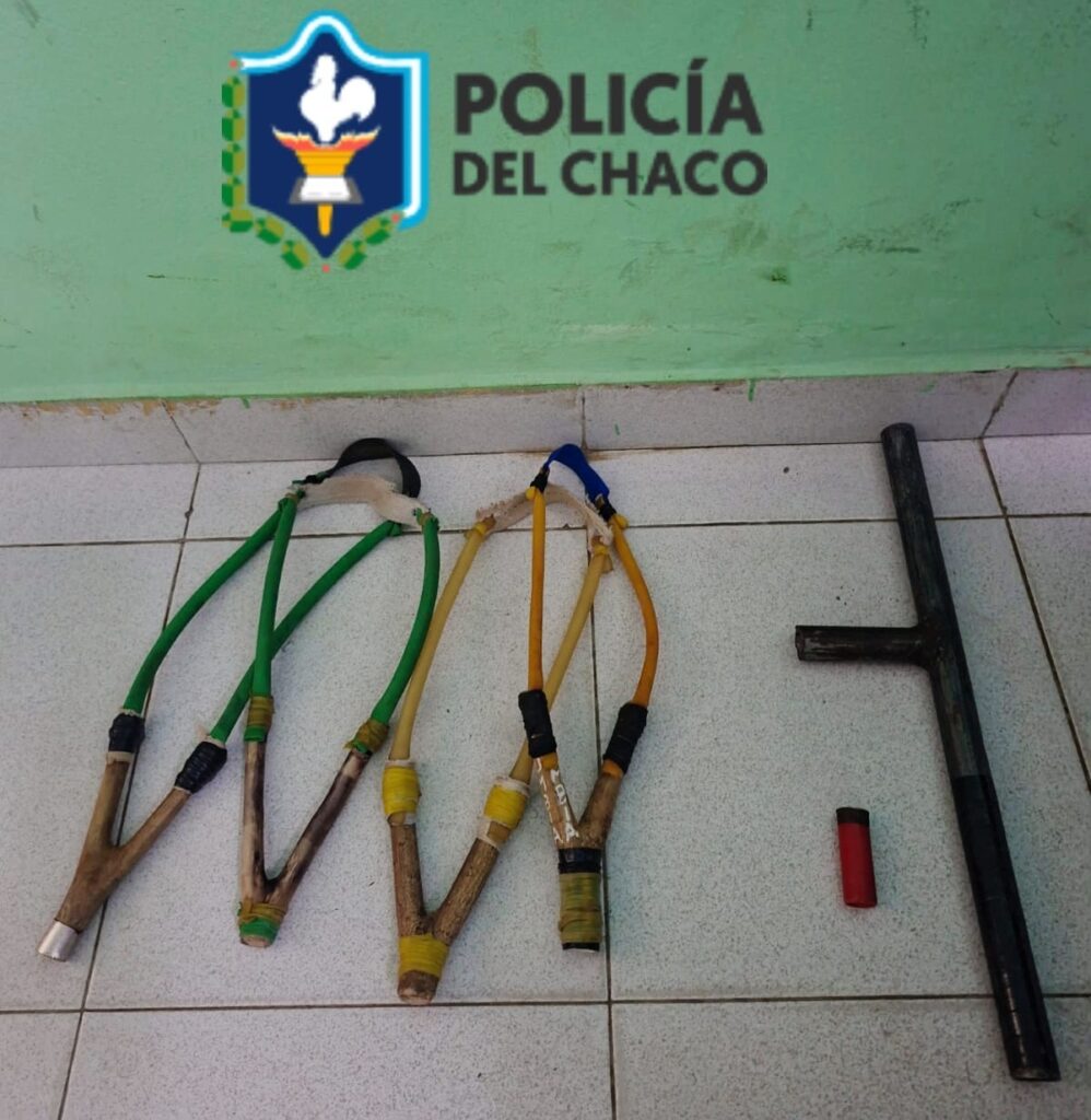 Según informaron fuentes policiales, al advertir la presencia de los uniformados varios de los adolescentes intentaron deshacerse de distintos elementos. Entre ellos se hallaron cuatro gomeras de fabricación rudimentaria, un arma casera tipo “tumbera” y un cartucho calibre 16.