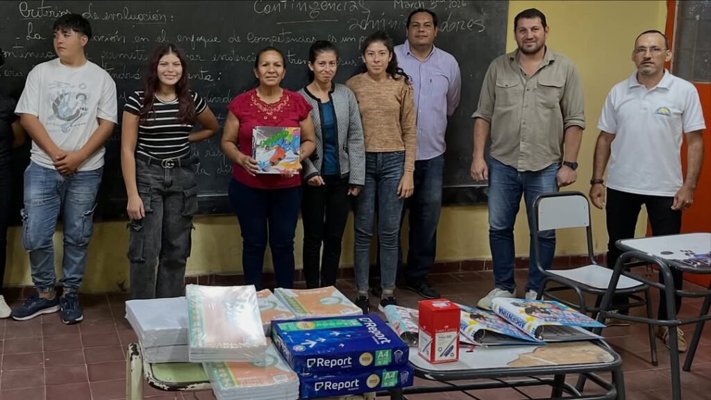 El intendente de Las Garcitas, Dr. René Armando Benítez, realizó la entrega de útiles escolares solicitados por alumnos del BLA (Bachillerato Libre para Adultos), en una acción destinada a acompañar el proceso educativo de jóvenes y adultos que continúan sus estudios.