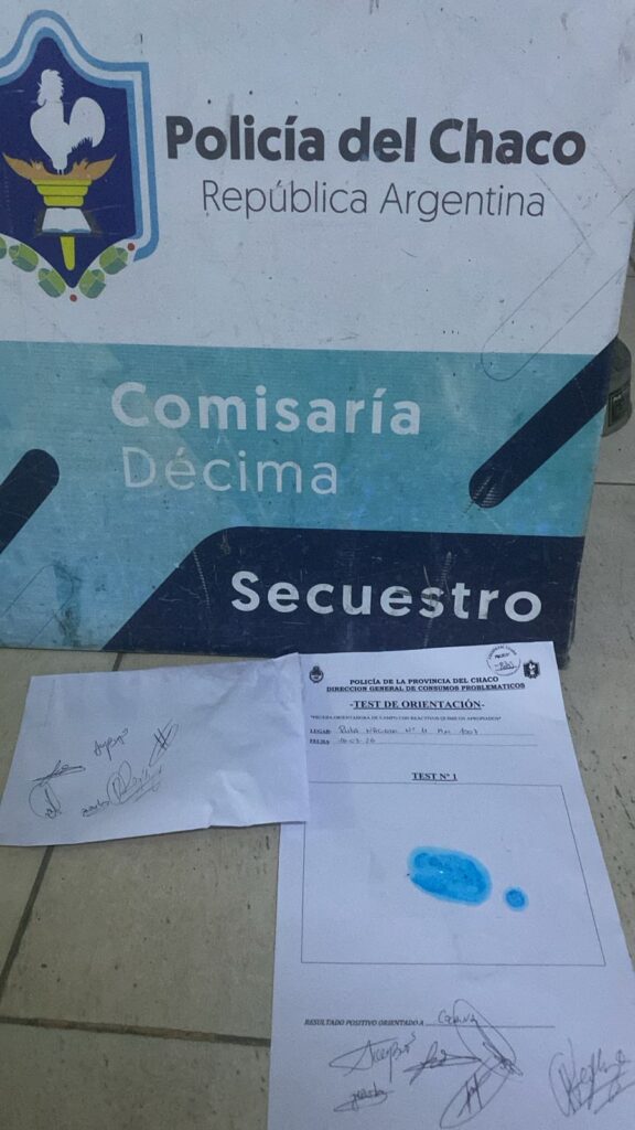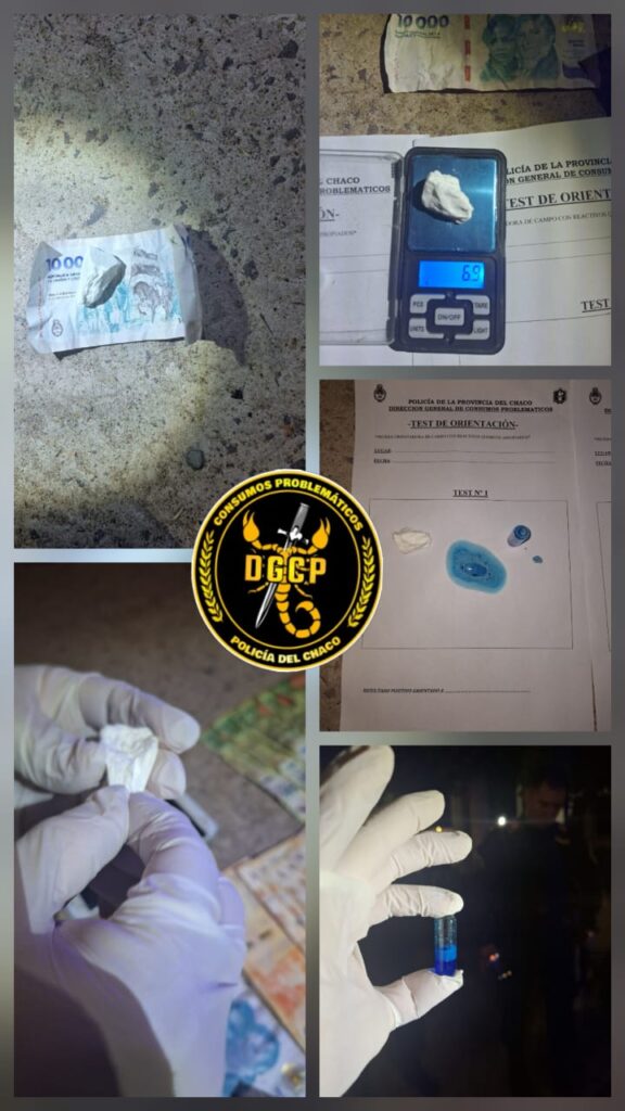 Posteriormente, con la intervención de personal especializado, se realizó una prueba de campo sobre la sustancia, la cual arrojó resultado positivo para cocaína, con un peso total de 6,9 gramos.
