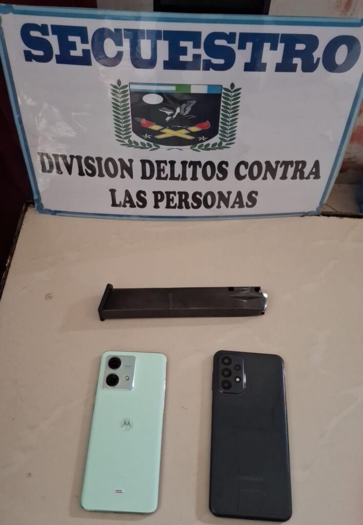 Durante el operativo, la policía secuestró un cargador largo de arma de fuego y dos teléfonos celulares que serán sometidos a peritajes para avanzar en la causa.
