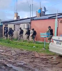 A partir de las tareas investigativas, el Juzgado de Garantías N° 1 ordenó la realización de dos allanamientos simultáneos. El procedimiento principal se llevó a cabo en una vivienda ubicada en inmediaciones del Pasaje Juan Manuel de Rosas, donde los agentes lograron detener a los sospechosos, de 21 y 23 años.