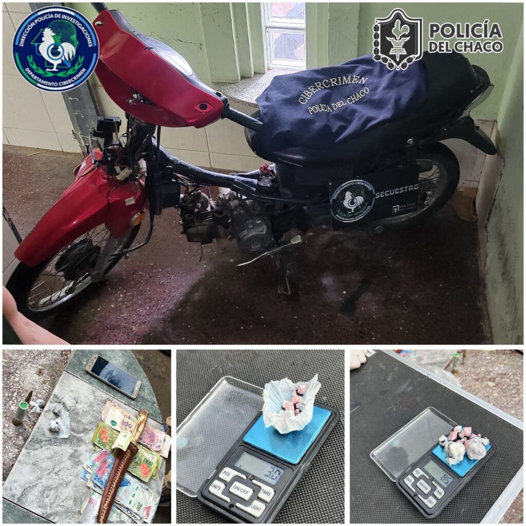 Durante los operativos, el personal policial secuestró un teléfono celular y una motocicleta que coincidiría con la utilizada en el ilícito investigado. Además, se incautaron sustancias estupefacientes —entre ellas cocaína y marihuana—, dinero en efectivo y municiones.