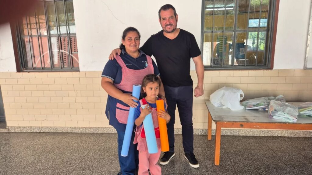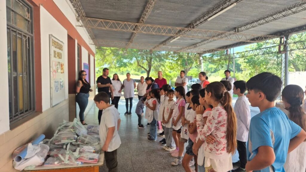Durante la recorrida, se realizó la entrega de útiles escolares y materiales destinados al aula, con el objetivo de acompañar el trabajo pedagógico y contribuir al desarrollo de las actividades educativas.