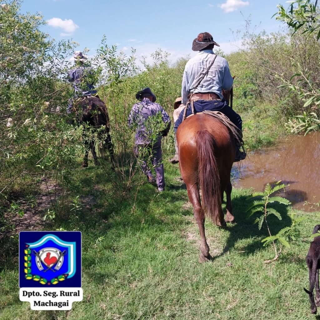 Durante el procedimiento, los agentes detectaron huellas que se dirigían hacia el sector sur del monte. Siguiendo los rastros, recorrieron más de siete kilómetros hasta dar con el animal, que se encontraba atado a un árbol.