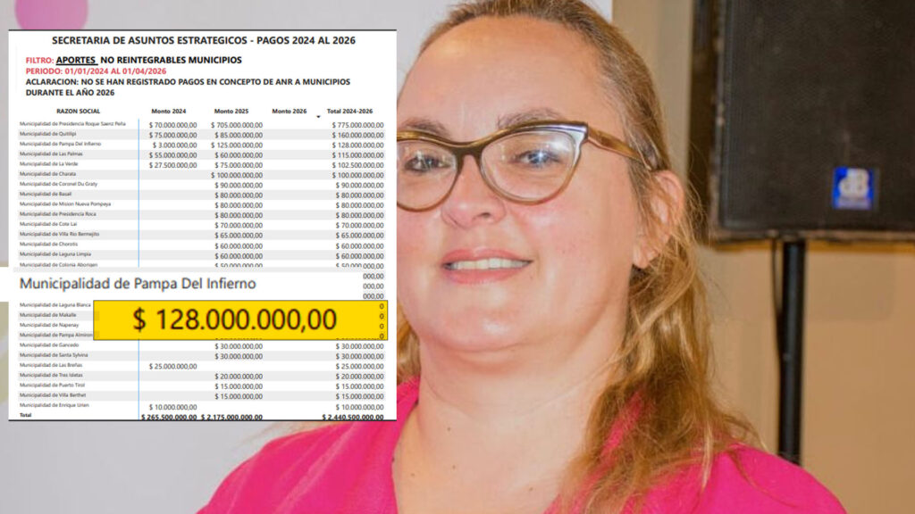 - El premio a Glenda Seifert: La intendenta de Pampa del Infierno, que ayer tildaba de «hecho gravísimo» el uso partidario de recursos, recibió para su propio municipio $128.000.000. En 2024 apenas le dieron $3 millones, pero para 2025 su presupuesto por ANR se disparó a $125.000.000.
