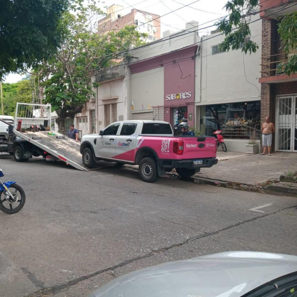 Un operativo de control de tránsito en el centro de la ciudad derivó este mediodía en el acarreo de una camioneta oficial del Gobierno del Chaco. El vehículo, ploteado con la identidad del programa Ñachec, fue detectado por los inspectores municipales mientras se encontraba estacionado en una zona no permitida, justo frente al comercio «Sabores», ubicado en una de las arterias más transitadas.