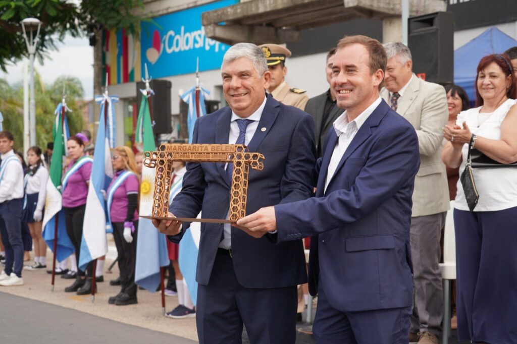 El intendente de Margarita Belén, Javier Martínez, acompañó el acto por el 119 aniversario de Barranqueras el lunes 6 junto al jefe comunal Roberto Benítez, la diputada Magda Ayala y vecinos de la ciudad.