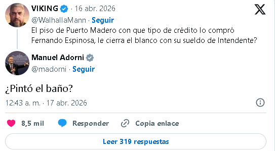 Lejos de adoptar un perfil bajo, el funcionario optó por responder con burlas a las críticas, interactuando con usuarios afines al oficialismo y relativizando las acusaciones en su contra. Entre los temas mencionados en sus publicaciones figuraron las refacciones en su vivienda, incluidas en la causa judicial, así como comentarios dirigidos a dirigentes opositores.