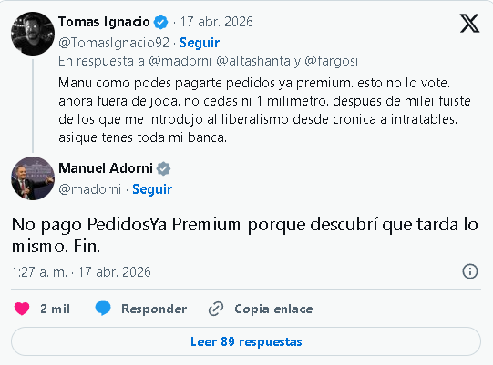 La actitud de Adorni se da en paralelo a un fuerte respaldo del oficialismo. Tanto el presidente Javier Milei como su hermana Karina Milei se mostraron públicamente junto a él en distintas actividades, reforzando su apoyo político en medio de la controversia.