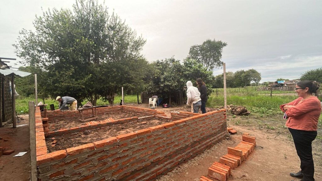 Según informaron desde la gestión local, en esta etapa inicial se comenzaron a ejecutar las bases de la vivienda, en un trabajo articulado donde el municipio aporta mano de obra y materiales, principalmente ladrillos, mientras que la familia contribuye con cemento, hierro y su propio trabajo en la obra.